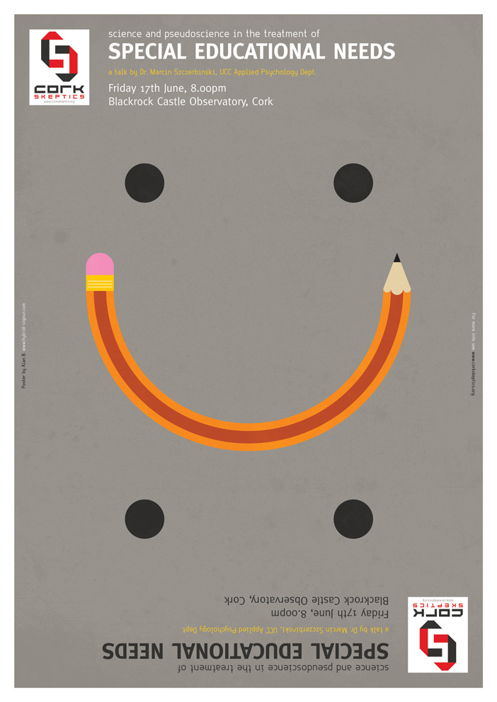 In this talk, Dr. Marcin Szczerbinski of the UCC Applied Psychology department will offer a brief overview of special educational needs—their symptoms and causes—as currently understood by the mainstream scientific community. The talk will cover subjects such as dyslexia, dyscalculia, dyspraxia, ADHD and autism. He will then suggest some rules of thumb that will allow us to evaluate the competing therapeutic proposals, helping to differentiate those that are plausible from those that are almost certainly a waste of time.