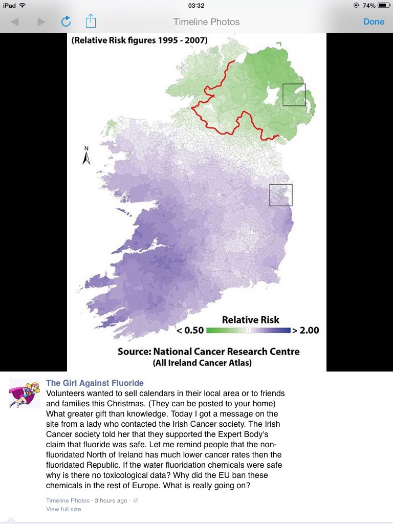 Over the past day, The Girl Against Fluoride, Aisling Fitzgibbon, posted this message in Facebook, where she attempted to link water fluoridation to leukaemia incidence in Ireland.