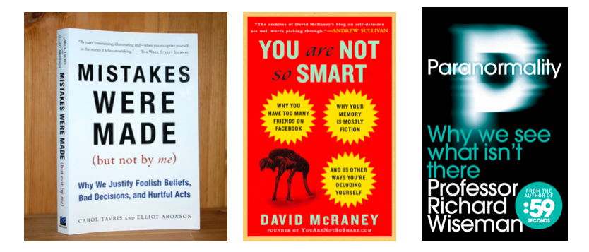 You Are Not So Smart, by David Mc Raney covers all the ways our brain gets it wrong. There is also a website and a podcast.